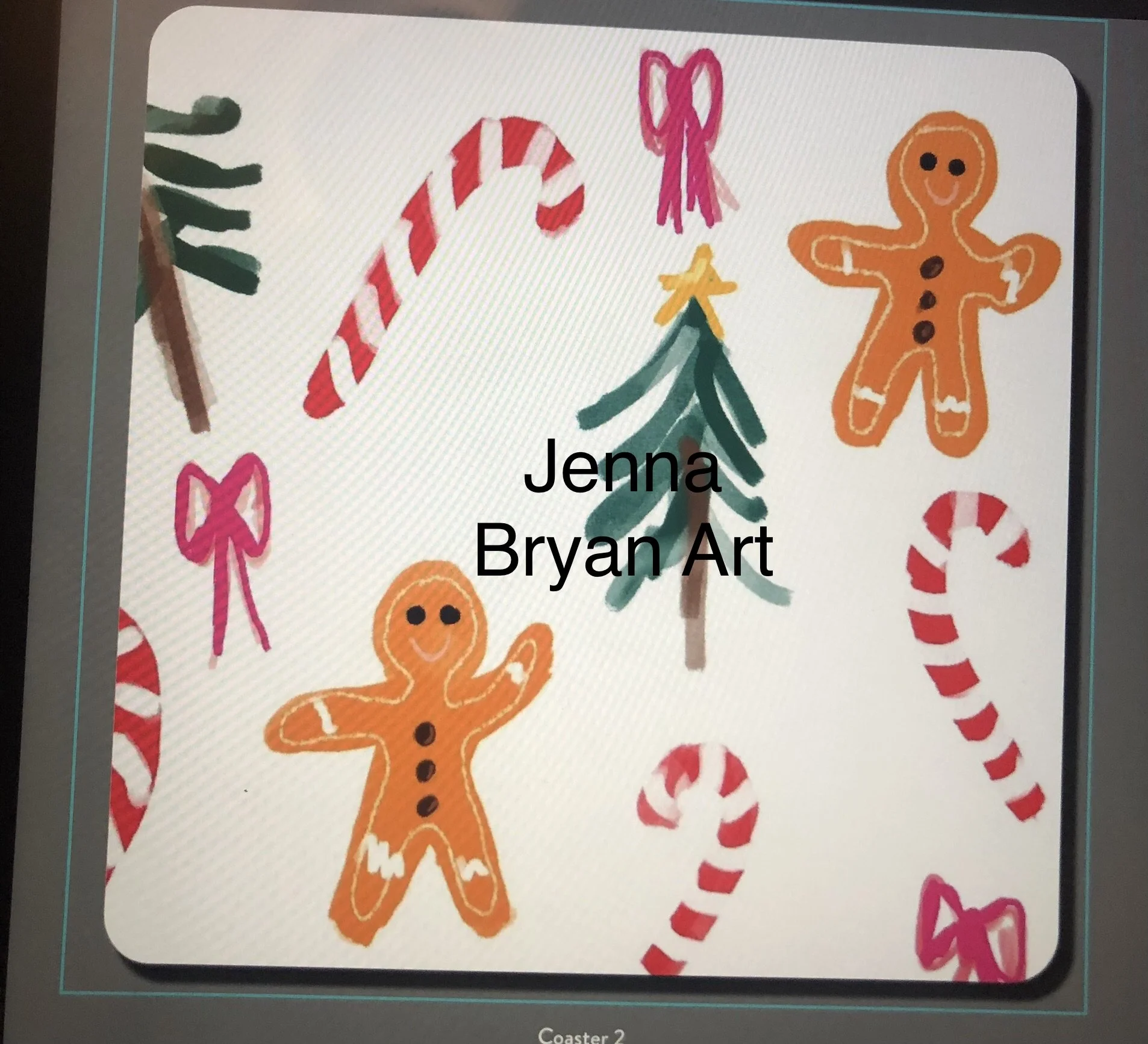 This repeated festive pattern was designed especially for printing on a mug & coasters. The size of the print is “9” x “4”. I recommend sites like ‘snap fish ’ to get it printed. It works really well on their custom coloured mug & custom coasters (pictured).